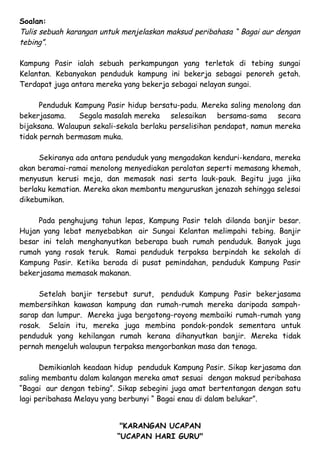 Baca versi flipbook dari 74 contoh latihan karangan UPSR. Kampung Pasir ialah sebuah perkampungan yang terletak di tebing sungai. Nasi Sudah Menjadi Bubur.