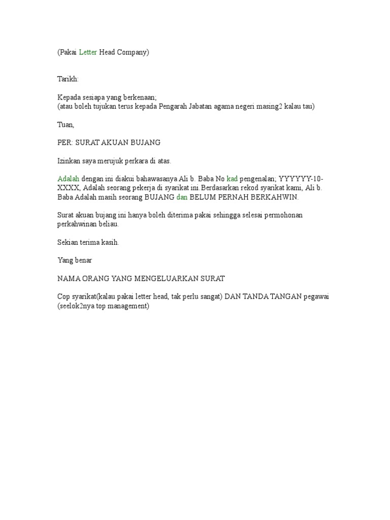 Contoh Surat Akuan Bujang Permohonan Nikah Pdf